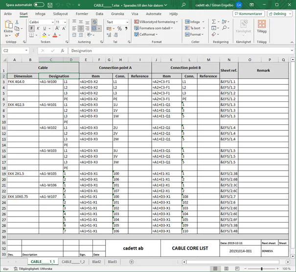 Förbindningstabellen kan enkelt exporteras, exempelvis till Autodesk Inventor, Solid Edge, Solidworks eller andra 3D-CAD-system.